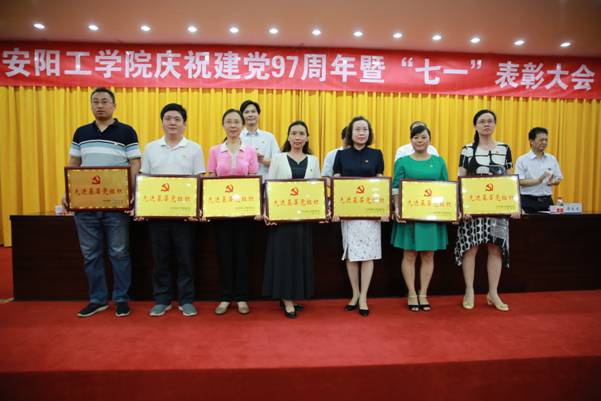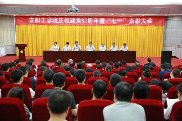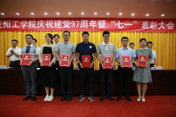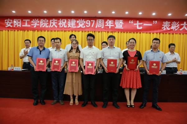 会议在雄壮的国歌中开始。党委副书记孙保平宣读了《中共安阳工学院委员会关于表彰先进基层党组织、优秀共产党员和优秀党务工作者的决定》,对17个先进基层党组织、82名优秀共产党员和19名优秀党务工作者予以表彰。与会领导为受表彰的先进基层党组织和个人代表颁发了荣誉证书。文法学院教工第一党支部书记高丽娜、经济管理学院教师党员武燕玲、机械工程学院学生党员赵鹏分别作典型发言。