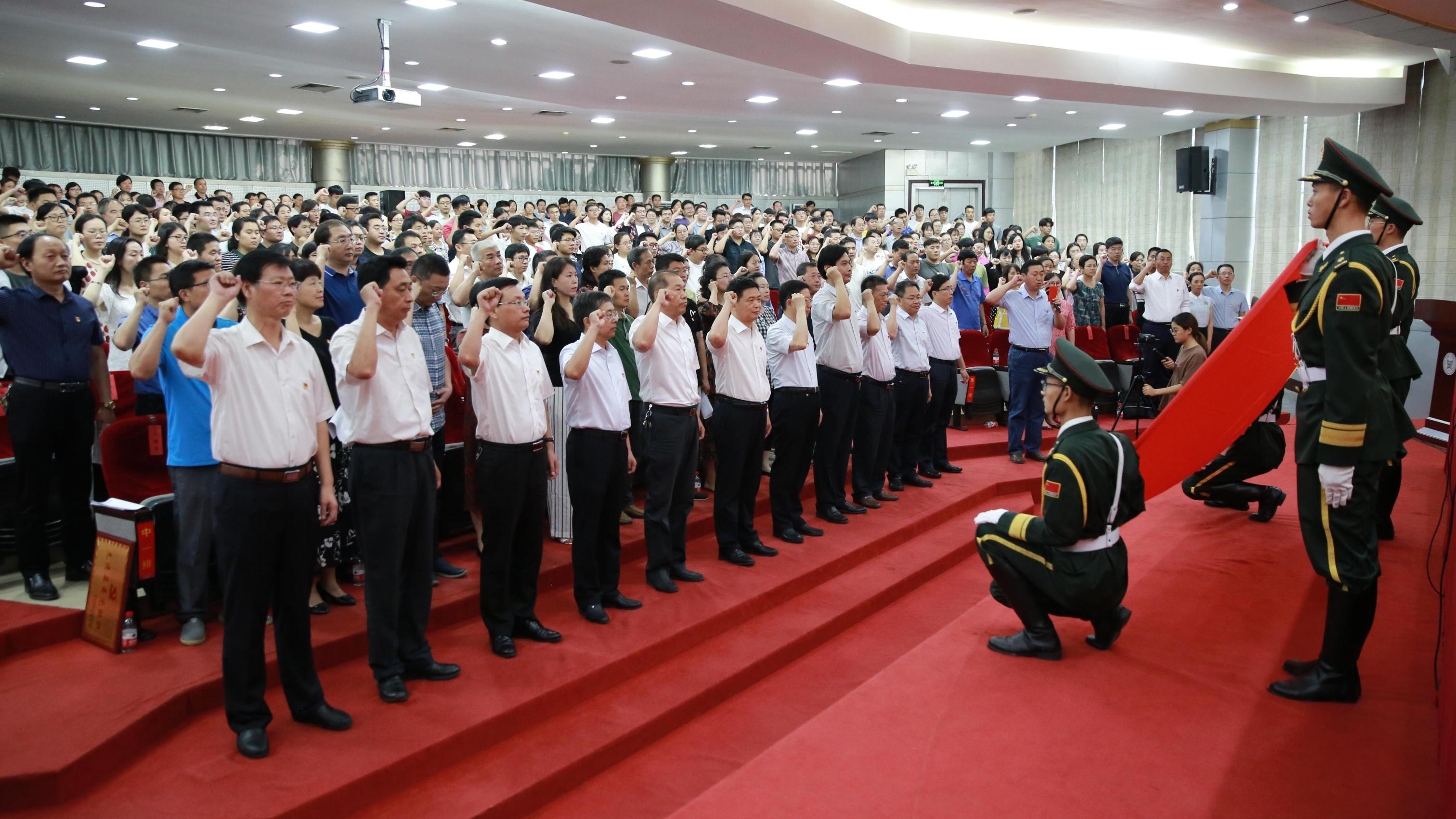 最后,举行了重温入党誓词仪式。在校党委委员、一区一区三区中部长齐献军的领誓下,与会全体党员面对党旗庄严宣誓,表达自己不忘初心、牢记使命,践行誓言,牢记党的宗旨,全心全意为人民服务的决心。