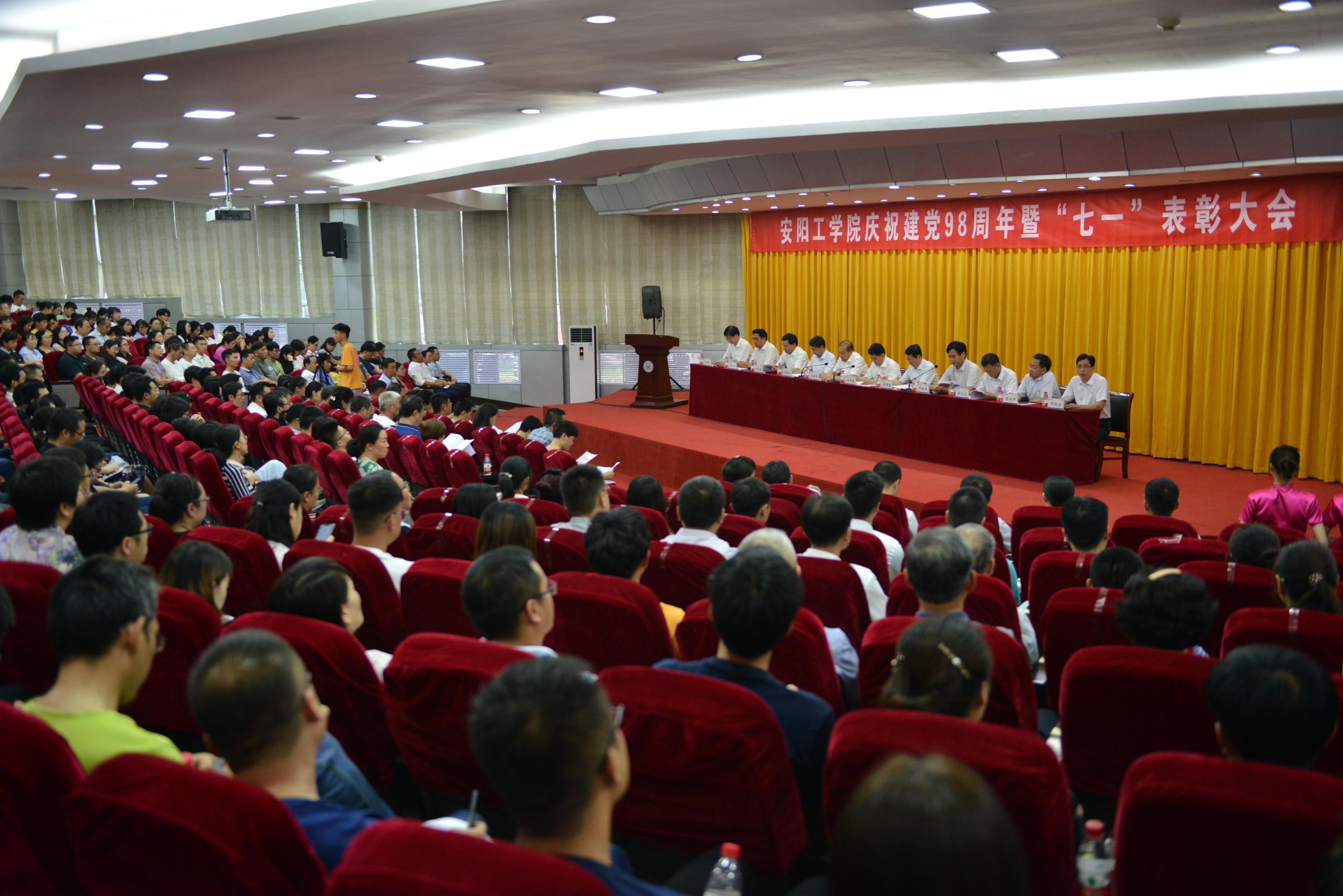 会议在雄壮的国歌声中拉开序幕。校党委副书记孙保平首先宣读了《中共安阳工学院委员会关于表彰先进基层党组织、优秀共产党员和优秀党务工作者的决定》。决定授予电子信息与电气工程学院党总支等18个基层党组织“先进基层党组织”称号,授予赵亚东等92名同志“优秀共产党员”称号,授予苏华等79名同志“优秀党务工作者”称号。与会领导为受到表彰的先进基层党组织、优秀党员和优秀党务工作者颁奖。