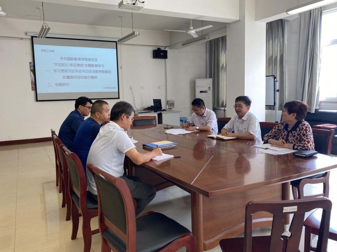万鹏杰在学习研讨中作了发言。他希望大家一要深入学习贯彻习近平总书记在河南视察期间的重要讲话和指示精神,以此为契机,把“不忘初心、牢记使命”主题教育引向深入,找准学院在教学、学生管理等方面的问题根源,并结合实际拿出解决问题的方案和措施,做到立行立改,不拖延,不推诿,见实效。二要抓好脱贫攻坚,抓实抓细贫困学生资助工作。三要勇于担当,开拓思路,积极做好中外合作项目的教学工作,提高教学质量,引导学生更加刻苦地学习,练就好为人民服务的本领。四要强抓机遇,主动出击,认真谋划好国际教育学院的建设和发展,把中外合作办学项目办得更加出彩。