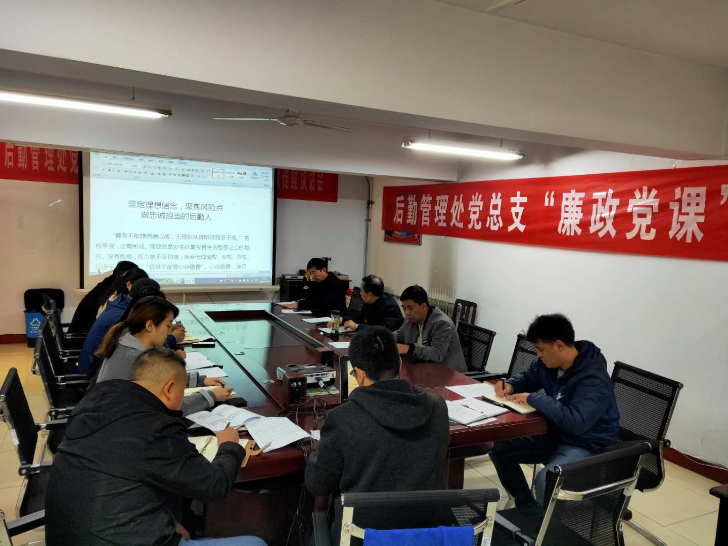 10月29日上午,后勤管理处党总支举办“我的祖国”主题党日活动暨专题廉政党课,全体党员参加,党总支书记王福海主持会议。