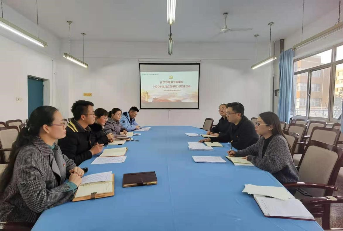 12月23日,化学与环境工程学院党总支在主教楼203会议室召开2020年党支部书记述职评议会。学院党总支委员、各党支部书记参加会议。党总支书记王孟主持会议。